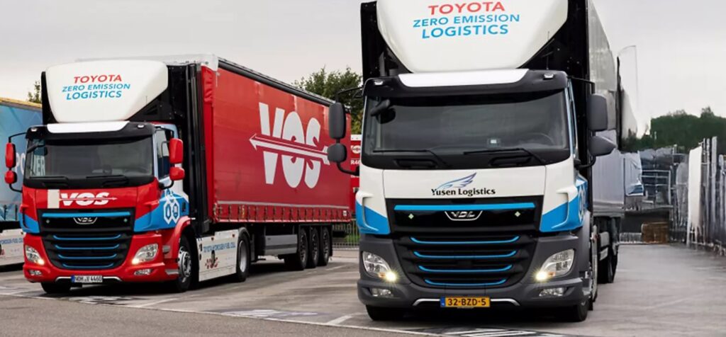 Toyota Motor Europe uruchomiła ambitną inicjatywę wykorzystania ciężarówek na wodorowe ogniwa paliwowe, wdrażając cztery specjalnie przekonwertowane pojazdy ciężkie w swojej europejskiej sieci dystrybucji części zamiennych. Ciągniki siodłowe o masie 40 ton i układzie 4×2 bazują na podwoziu DAF CF wyposażonym we własne moduły ogniw paliwowych Toyoty i przekonwertowanym do napędu ogniwami paliwowymi przez holenderską firmę VDL Groep. Każda ciężarówka jest obsługiwana przez innego zewnętrznego wykonawcę dystrybucyjnego—CEVA Logistics, Vos Transport Group, Yusen Logistics i Groupe CAR—tworząc część strategicznego planu Toyoty osiągnięcia neutralności węglowej w całej Europie do 2040 roku.